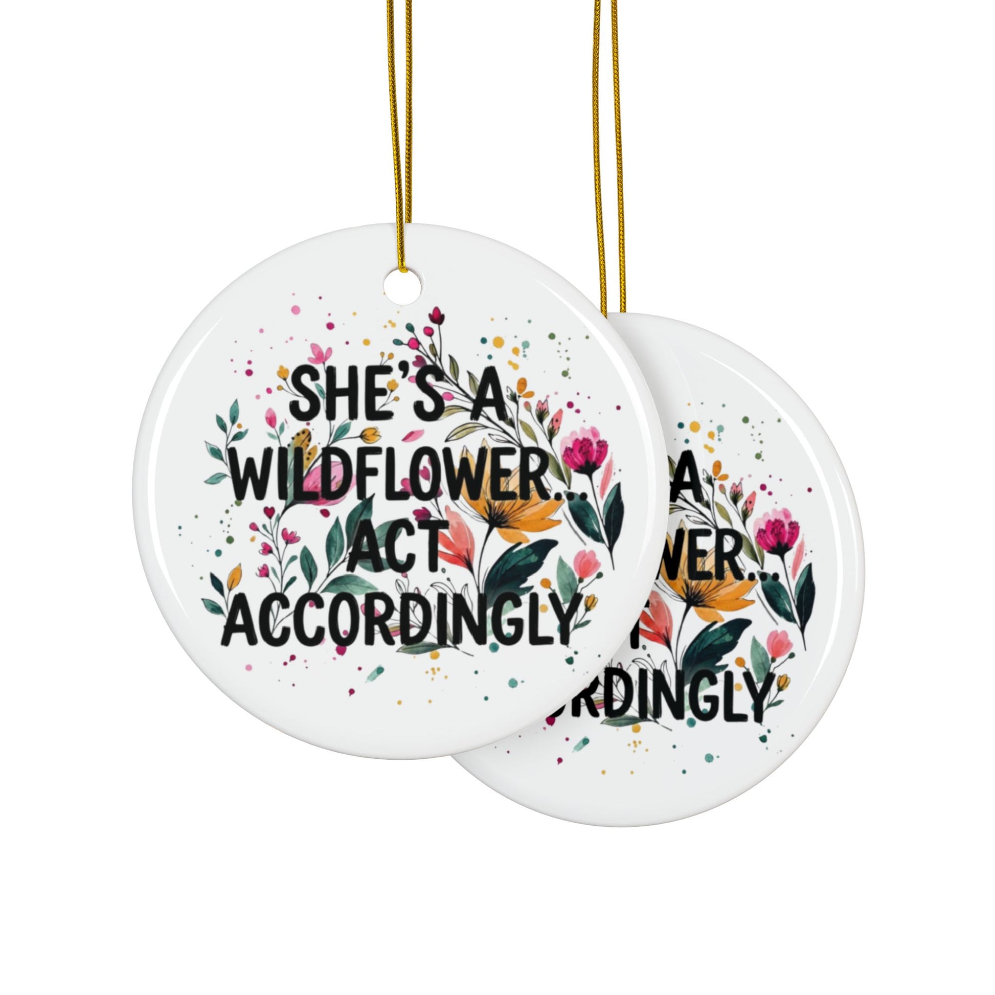 "Shes's A Wildflower Act Accordingly" Ceramic Ornament, (1pc, 3pcs, 5pcs, 10pcs)